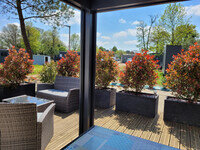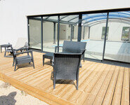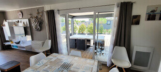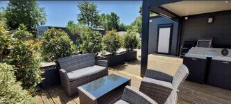 L’écolodge s’ouvre sur la grande terrasse arborée avec pergola bioclimatique intégrale, espace repas (et barbecue), transats, salon de jardin afin d'en profiter pleinement.